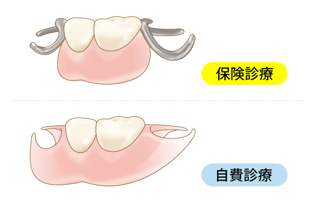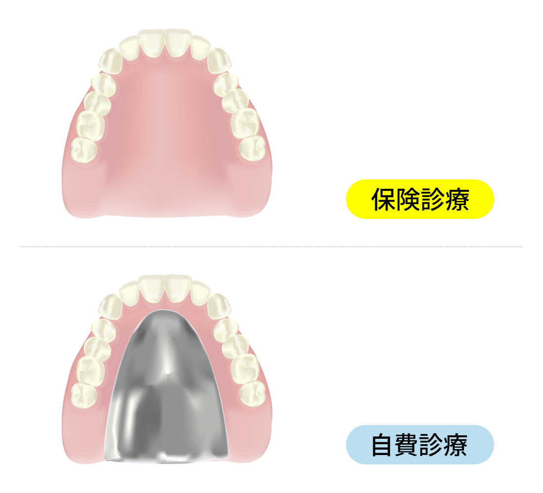 一方で自費診療で作る場合は、金属のフレームを使用するため、薄く丈夫に作ることができます。また、食事の温かさや冷たさを感じやすいのも大きな利点です。